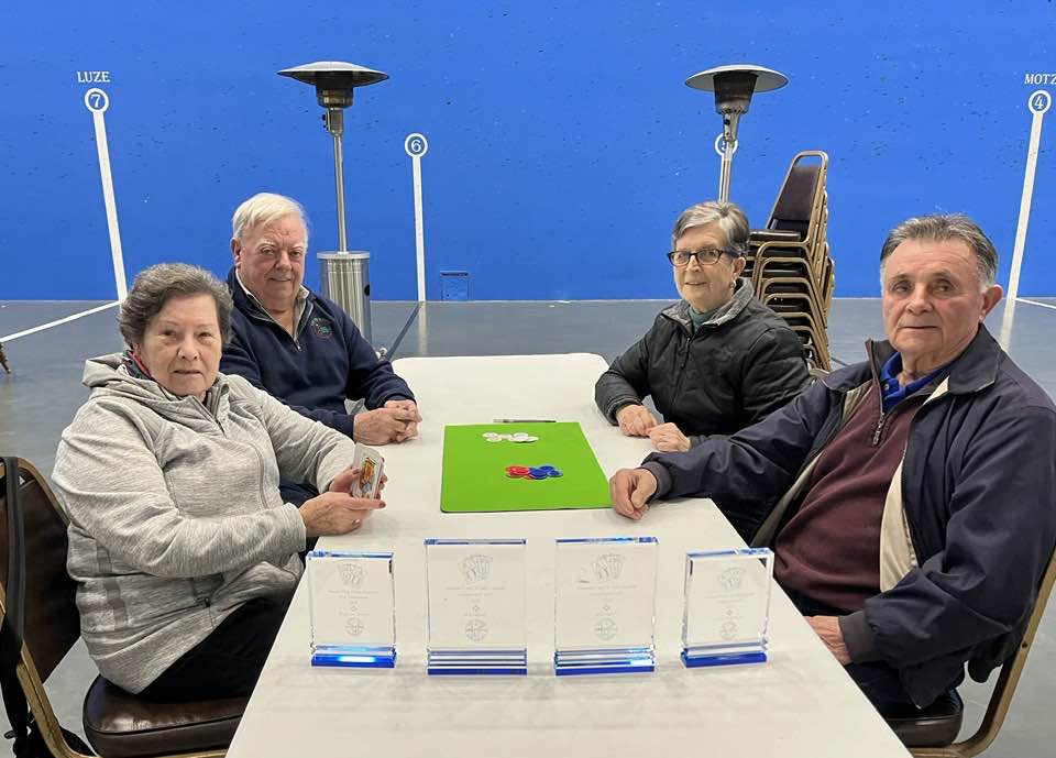 Zorionak to the Basque Club's 2023 Mus Champions: Josephine Curutchet (left) and Carmen Salaburu (right). Javier Alzugaray (left) and Miguel Ybarra (right) won second place.